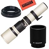 The high-power 500mm/1000mm telephoto lens for NIKON DSLR is a manual fixed focus multi-coated T-mount lens that yields images with impressive peak contrast and well-controlled flare. It has a minimum focus distance of 33 feet and a 5° angle of view. It has a 67mm thread and includes a tripod mount, black lens pouch and a T-mount adapter for Canon SLR cameras. For best results, use with monopod, tripod or chest supports to alleviate shake.