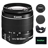 The EF-S 18-55mm F3.5-5.6 looks destined to carry the flag as the kit lens sold with virtually every Canon D SLR over the next few years (and that counts as an awful lot of lenses), so it really needs to perform well in the face of some impressive competition. Fortunately for them, Canon have indeed upped the ante with this new lens; it's much better than its predecessor, especially in terms of sharpness in the corners and at wider apertures, and with reduced chromatic aberrations to boot. Indeed overall it's an extremely well-behaved little lens, with very few nasty surprises for the user, and a remarkably good image stabilization unit; indeed Canon's main concern may ultimately become whether users have as much incentive to upgrade to more expensive optics as they did before. The Canon 18-55mm f/3.5-5.6 EF-S IS Lens is a standard zoom lens that features the smaller size image circle, exclusively designed for EOS Digital Rebel and other cameras using the "APS-C" size sensor. The focal length is equivalent to approx. 28-90mm in 35mm format. This makes it ideal as a basic everyday lens. This lens features Canon's optical Image Stabilizer technology, which provides up to 3-4 stop compensation for image blur caused by camera shake and slow shutter speeds. This ensures clear, crisp images, even in dim light. Designed specifically for digital photography, the lens has specially shaped lens elements and Super Spectra coatings to suppress ghosting and flare, which can be caused by reflections off digital camera sensors. An exclusive optional lens hood can further reduce the incidence of flare. Note! Only fits on the EOS 10D, 20D, 30D, 40D, 50D & 60D or Digital Rebel XT XTi XS XSi T1i T2i T3 T3i SLR cameras